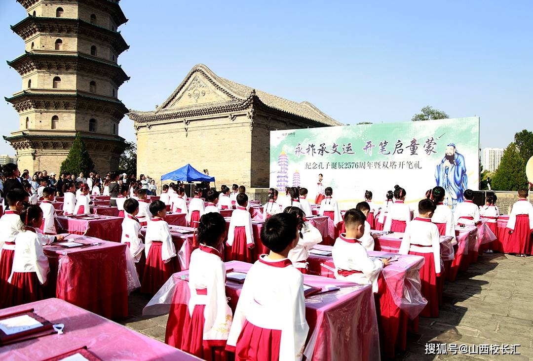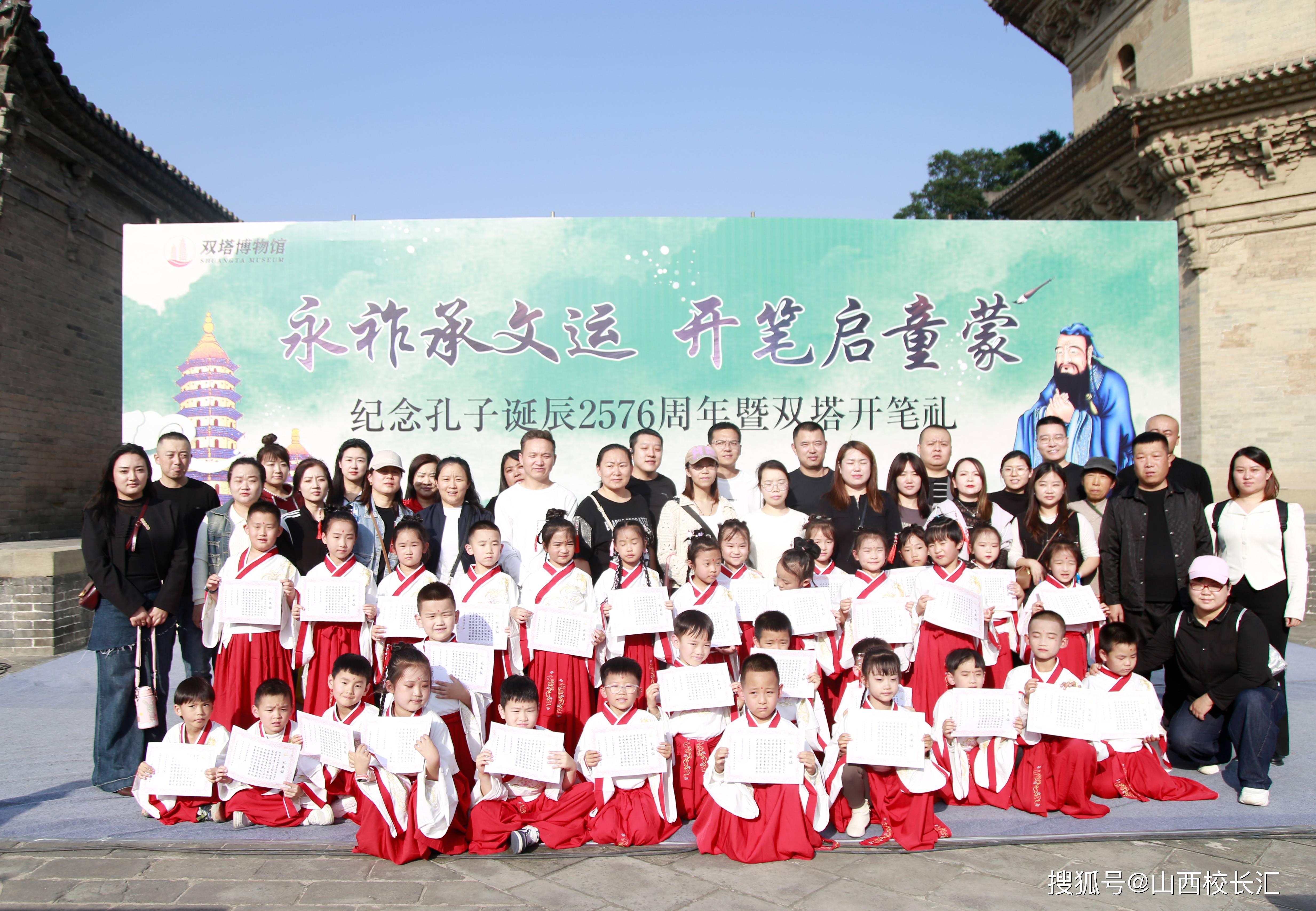 金风送爽,双塔凌霄。9月30日,太原市迎泽区迎东小学的一年级新生、家长及校行政领导齐聚双塔博物馆,隆重举行以“永祚承文运 开笔启童蒙”为主题的开笔礼活动。活动恰逢孔子诞辰2576周年,学子们迈状元桥、穿永祚门,在古建与书香的交融中开启文化人生第一步,既是对尊师崇礼的启蒙教育,更是对中华优秀传统文化的传承与弘扬。