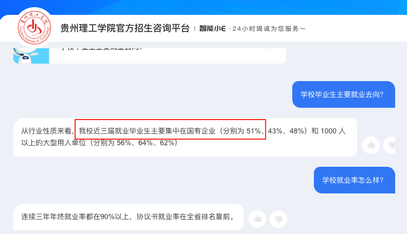 毕业生就业质量也非常高,最新一届毕业生有50%以上都能进入国有企业就业!