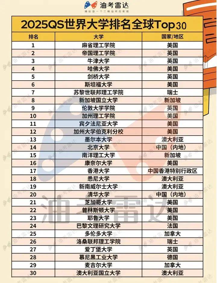 需要注意的是,国家管网免考要求的是QS世界大学排名(QS World University Rankings),不是泰晤士高等教育世界大学排名(Times Higher Education World University Rankings,又译为THE世界大学排名),此外,申请者需具有研究生学历。下面是小蓝鲸找到的《2025年QS世界大学排名前30名高校榜单》和《QS世界大学排名国内排名前10名高校榜单》。