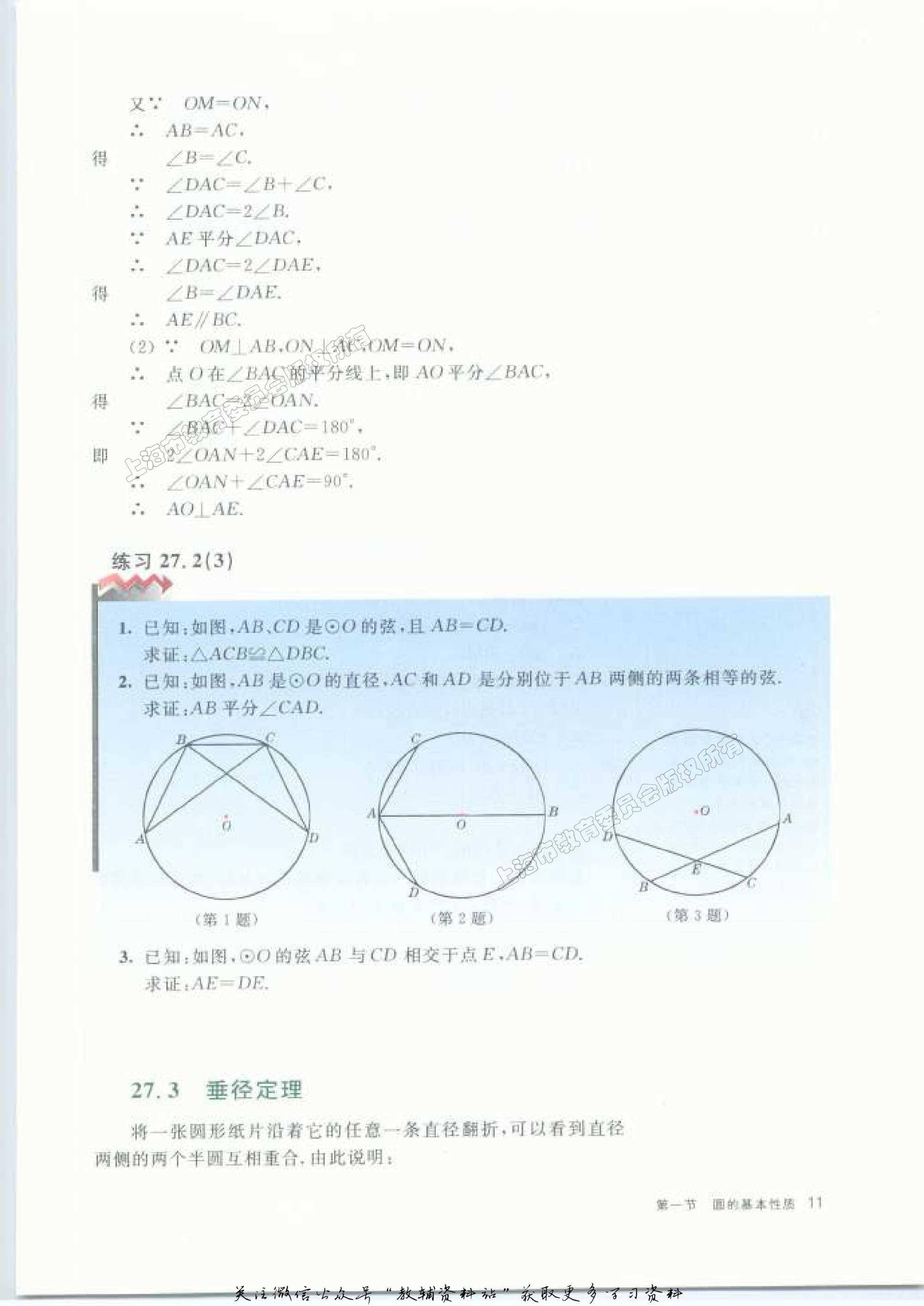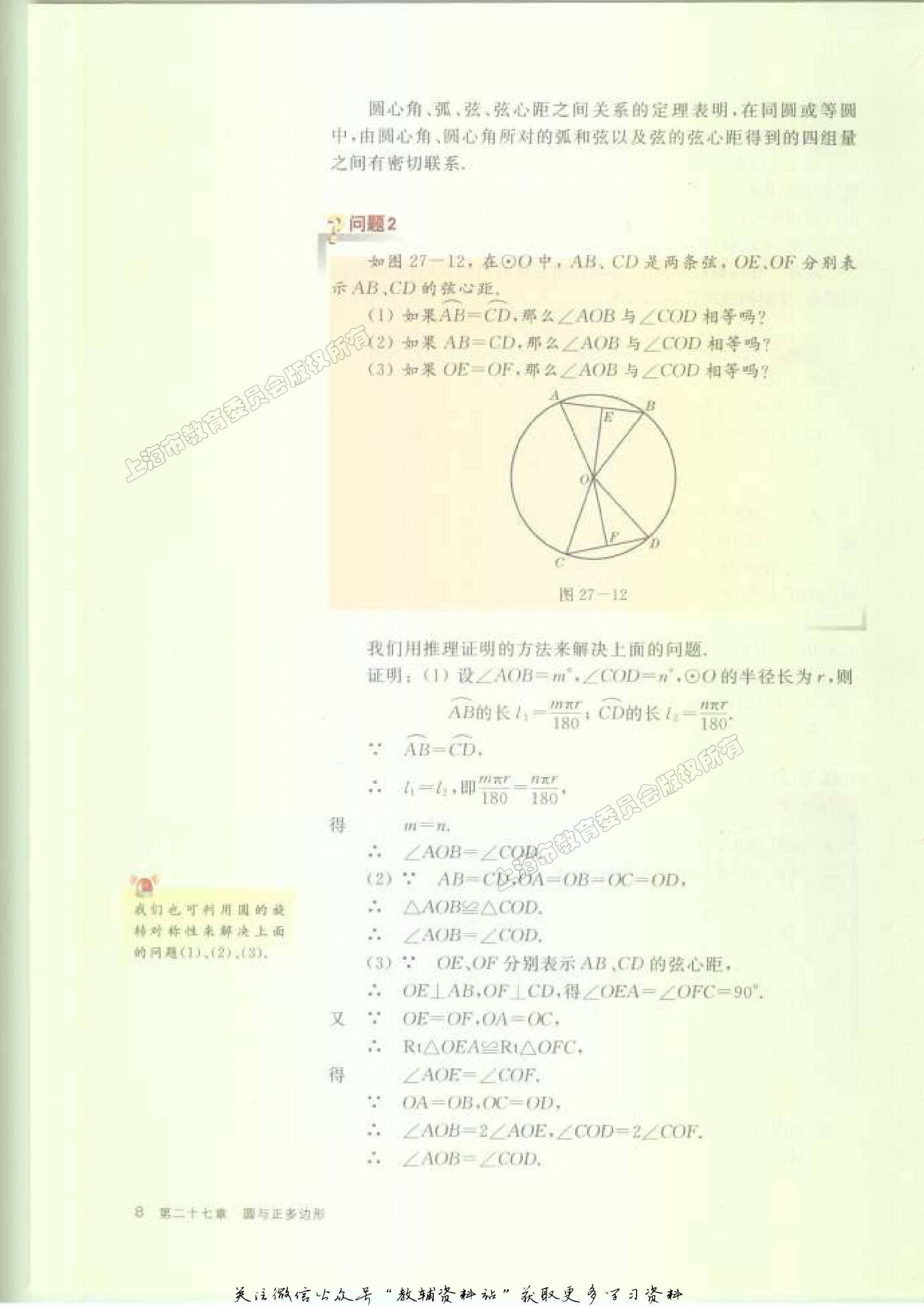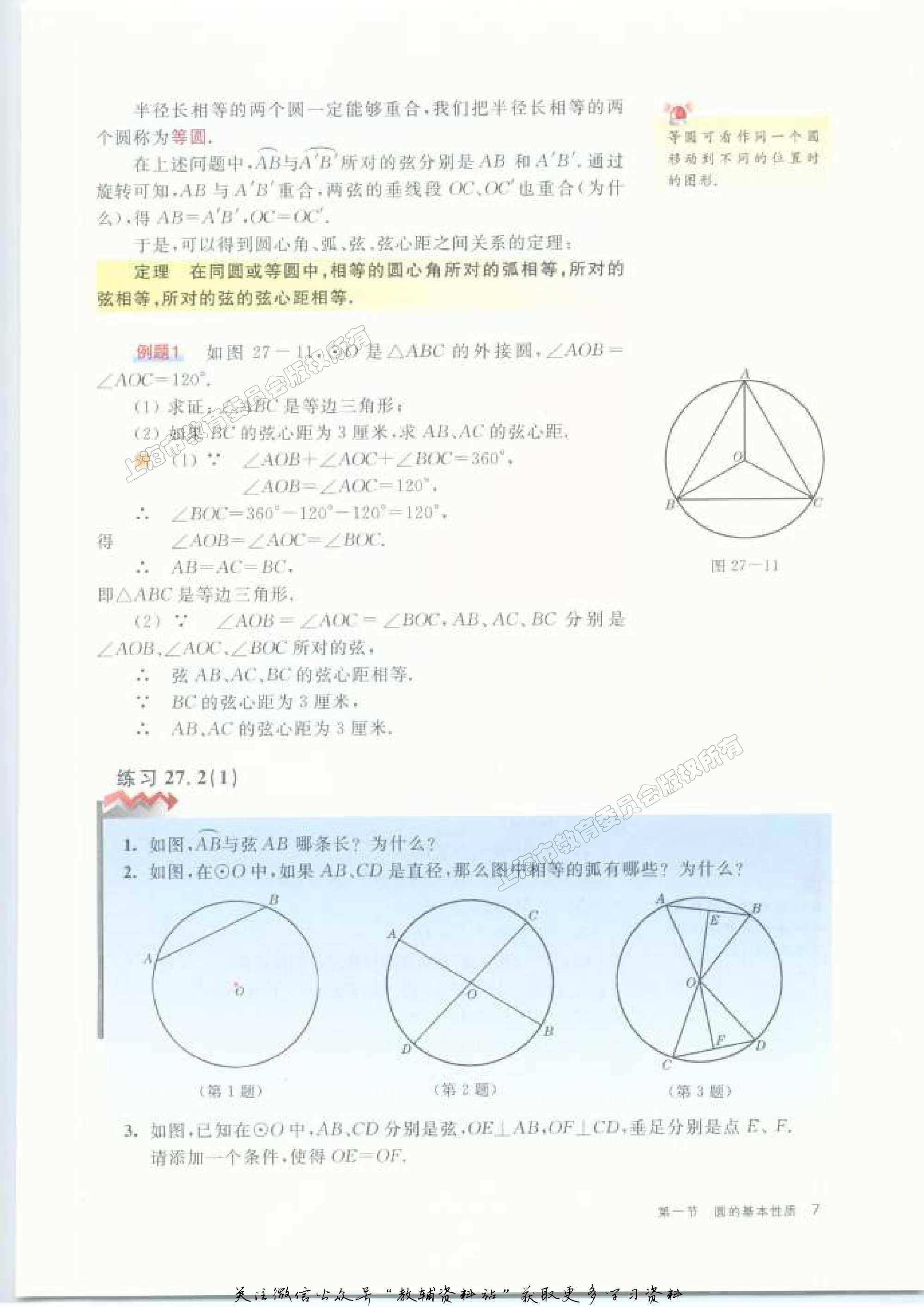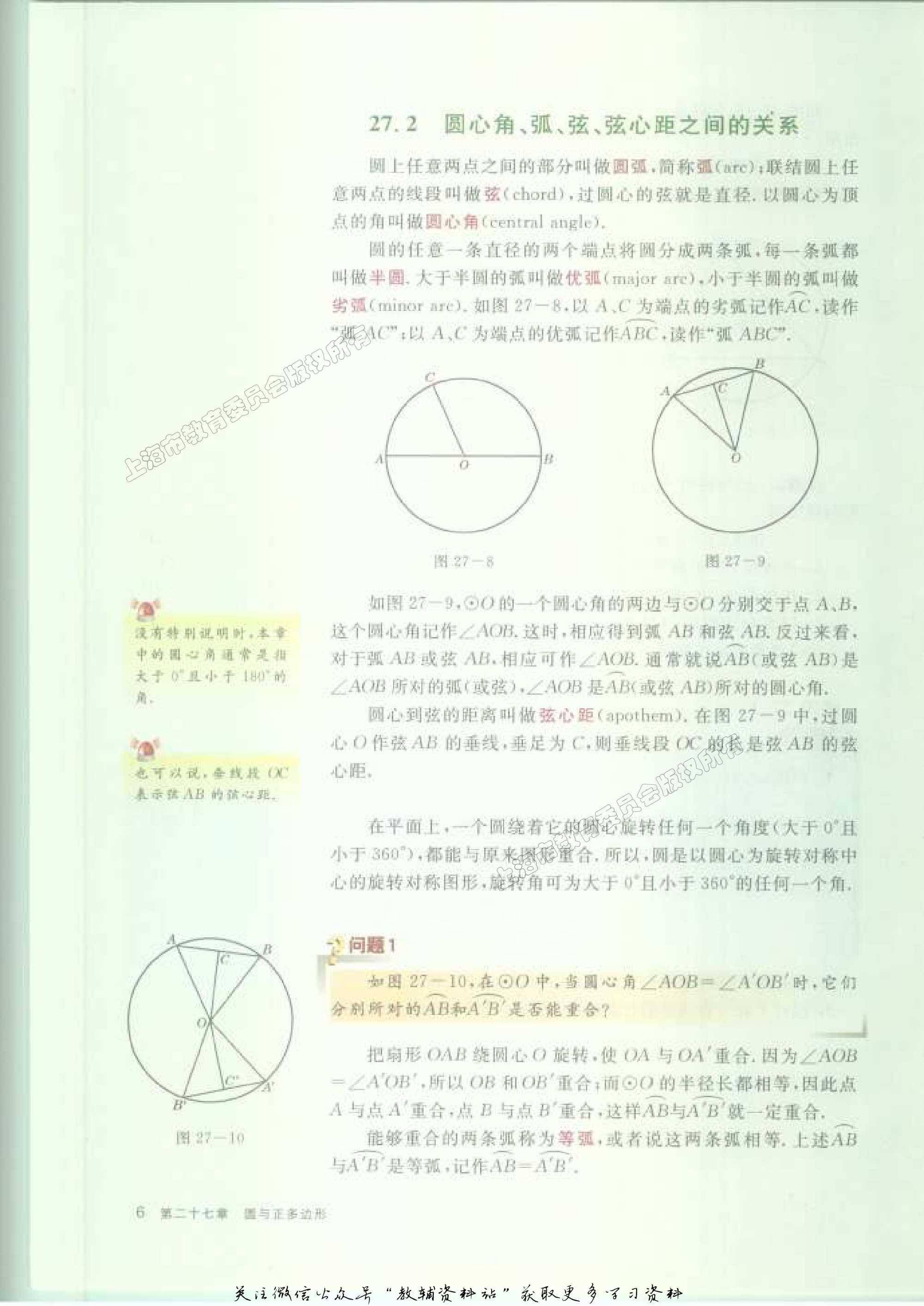 27.2 圆心角、弧、弦、弦心距之间的关系