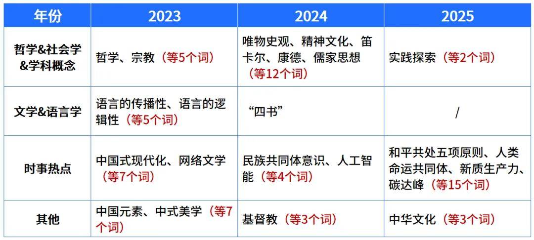 广外百科知识的词条部分,建议大家按照学科类型划分进行复习。重点考察哲学及时事热点。哲学部分喜欢考察基础学科概念,同时具体知识也考察较多。时事热点以政治、经济、科技、文化热点为主。语言学部分要具备基本的语言学功底,建议以题带学。此外,近年大概念考察内容多,需要对学术体系有所了解。