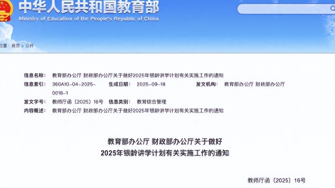 有关部门发布了《关于做好2025年银龄讲学计划有关实施工作的通知》,宣布今年将面向全国招募7000名退休优秀教师,深入中西部和农村地区支教。