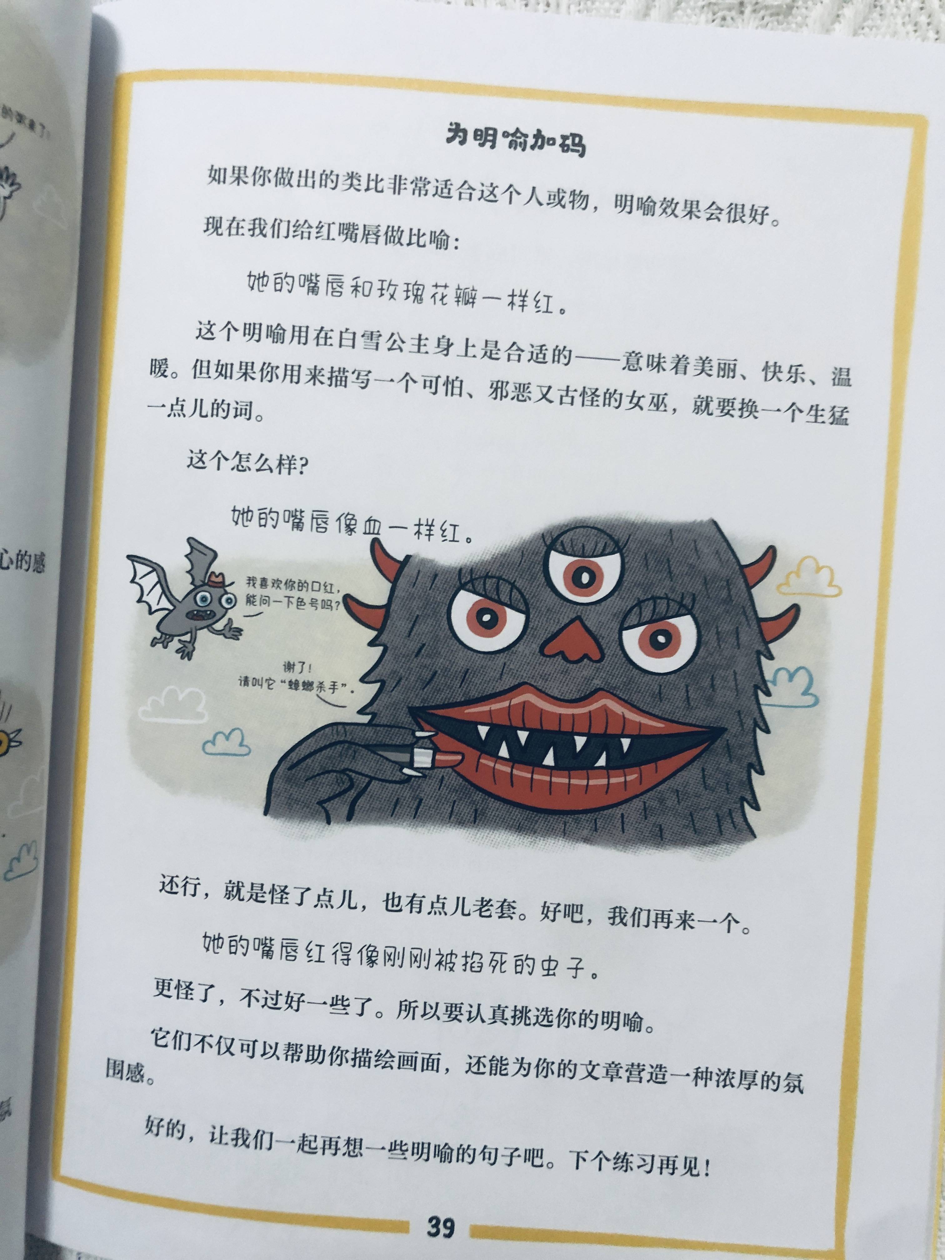 我家老二看完《小怪兽创意写作课》后表示:这本书对他来说,是有用的。书中的这些写作技巧,老师未曾教过。