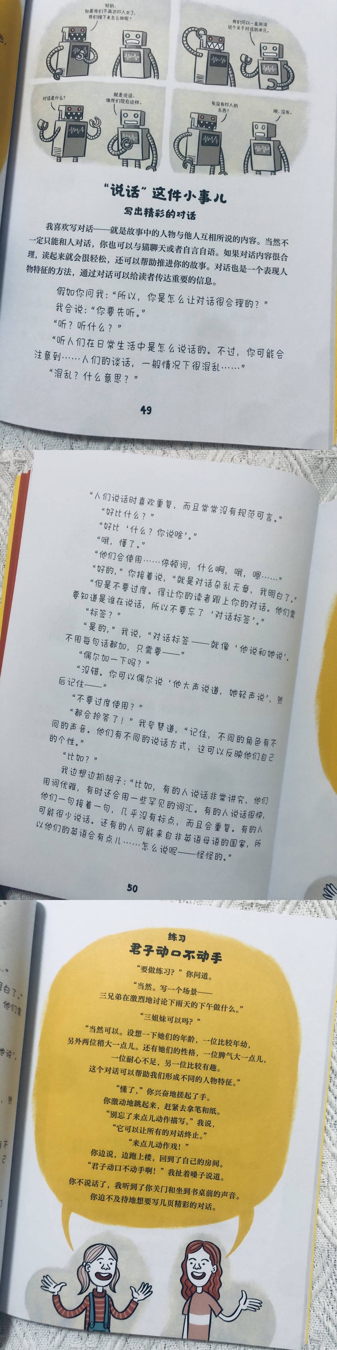 比如要“写出精彩的对话”,看《小怪兽创意写作课》这位“老师”是如何手把手教孩子的。