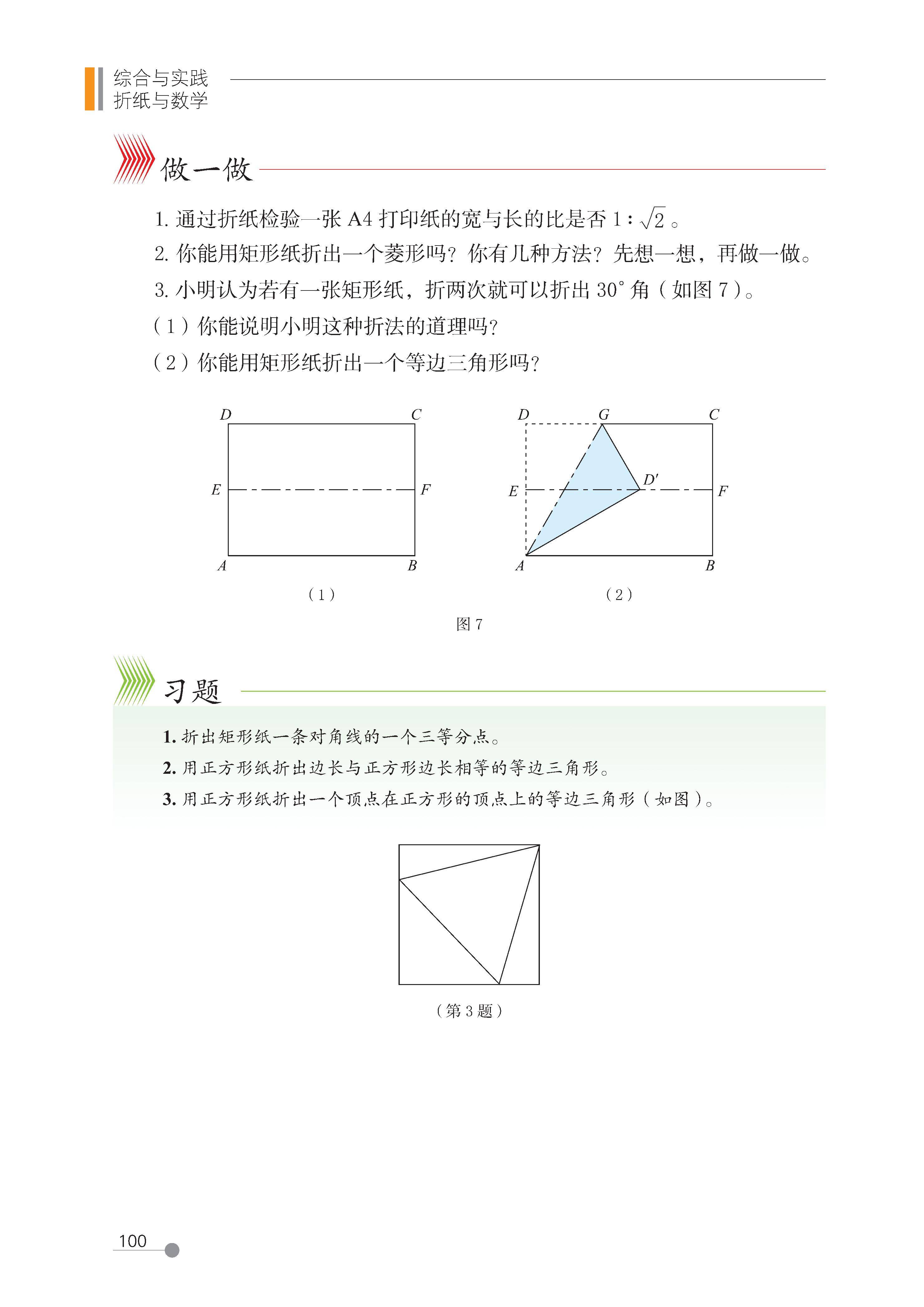 3. 渗透 “数形结合思想”:连接 “数” 与 “形” 的关联“统计活动 —— 视力的变化” 中,“数据”(数)通过 “统计图”(形)直观呈现,学生能从 “折线图的下降趋势”(形)快速理解 “视力下降”(数的规律);“折纸与数学” 中,“折纸的次数”(数)与 “得到的图形个数”(形)对应,可总结出数量关系(如 “折 n 次正方形,得到 2ⁿ个小正方形”)。教学意义:让学生进一步体会 “数缺形时少直观,形少数时难入微”,通过 “数形结合” 整合代数与几何知识,形成更完整的数学知识体系。