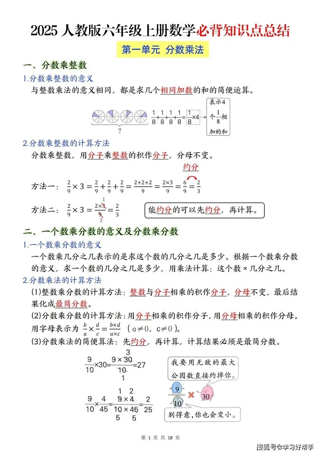 今日为大家分享的是 25 秋人教六年级上册数学全册知识点总结。六年级上册数学是小学阶段数学学习的 “收官整合期”,既要实现对前期知识的综合运用,更要推动数学思维从 “具体运算” 向 “抽象深化” 过渡,而学生在此阶段常面临 “知识模块割裂、概念理解不透彻、实际运用不灵活” 的问题,这份知识点总结恰好精准对接这些学习痛点。