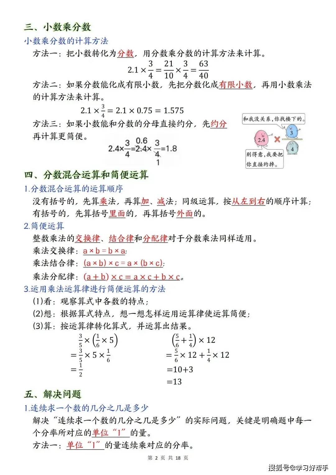 从学习价值来看,这份总结能有效破解六年级学生 “知识零散难串联、理解表面难深入、运用生涩难上手” 的困境:以单元为纲的结构让学生清晰把握知识脉络,构建完整的知识网络;对概念、算法的系统解读,帮助学生吃透知识本质,而非死记硬背;结合应用场景的梳理,则为学生搭建了 “知识与实际问题” 的桥梁。无论是日常课堂学习后的知识巩固、单元复习时的体系梳理,还是期末备考阶段的全面复盘,这份知识点总结都能为学生提供有力支持,让六年级数学学习既有清晰的体系框架,又有实用的方法指引,更能实现思维深度的提升,为后续初中数学学习奠定坚实基础。