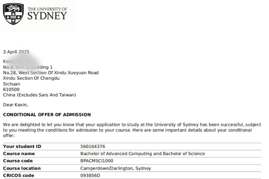 悉尼大学→ 查同学、陈同学、刘同学等组团上岸