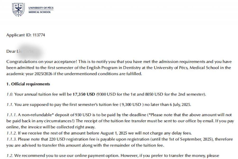 刘同学:一人独闯匈牙利,就读佩奇医科大学。