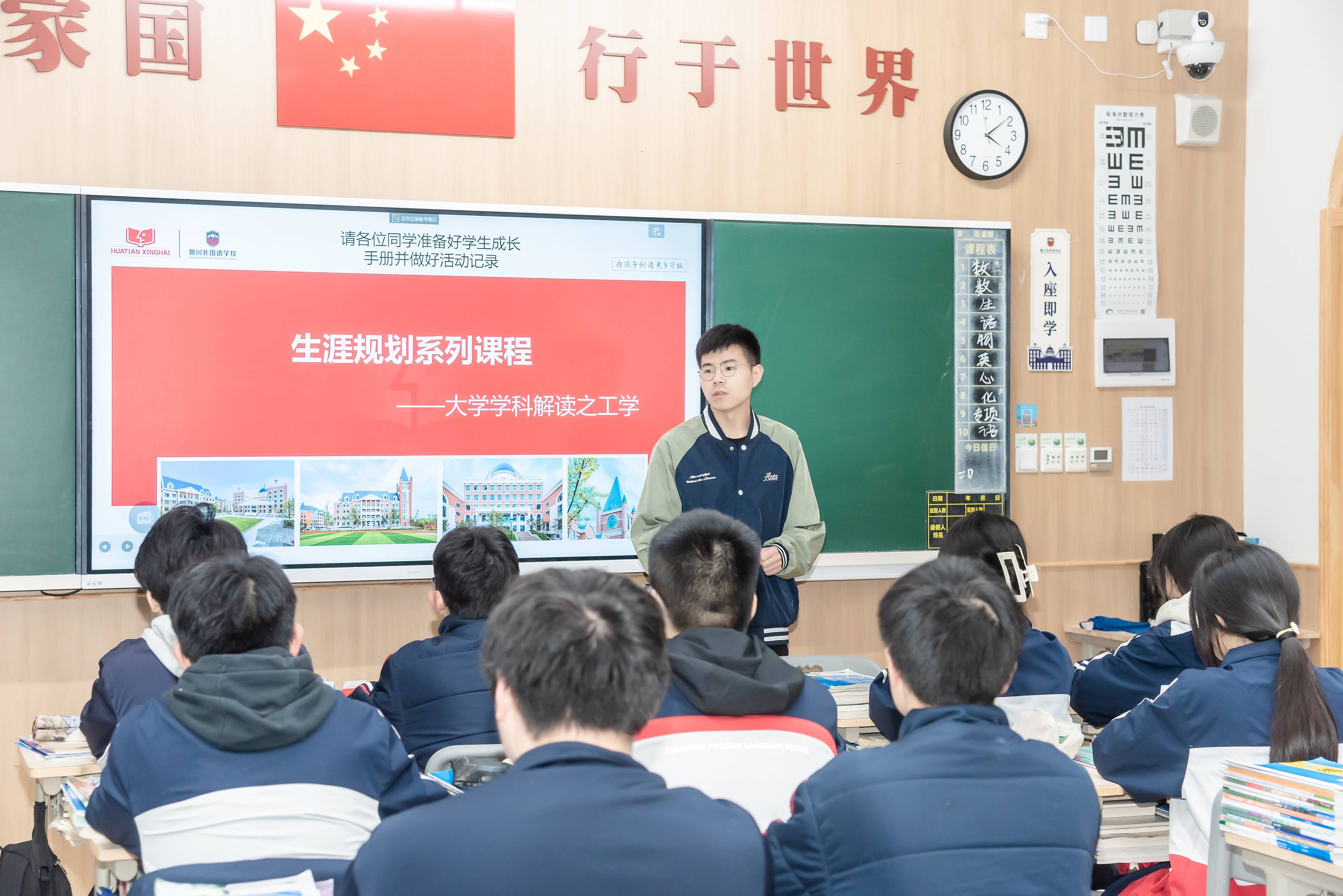 用学校高中部课程建设中心刘老师的话说,在新川外国语学校,学生的目标不仅只是“考个好大学”,而是多条路径并行。比如高考录取、强基计划、综合评价、小语种、艺体高考、海外留学等,一人一规划。