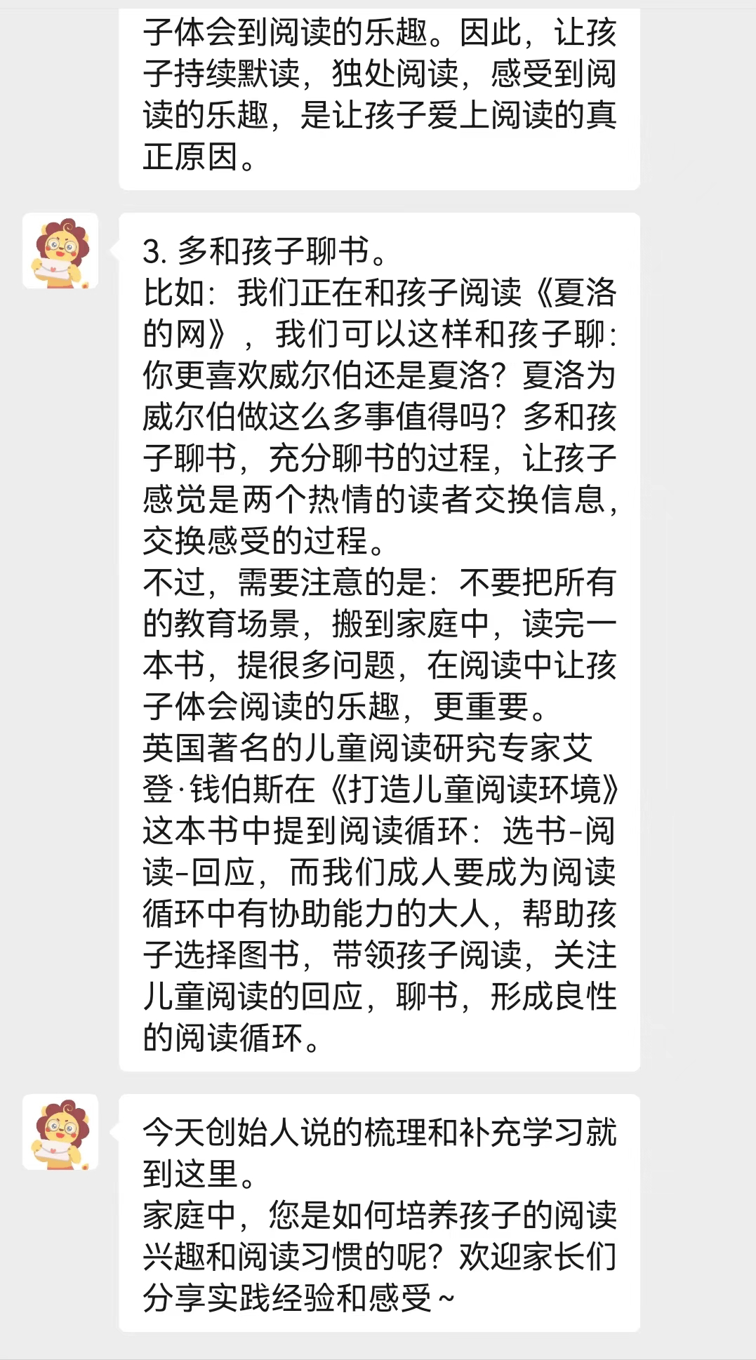 家长们有任何孩子的阅读问题,都可以1对1咨询伴读老师;伴读老师还会在社群分享干货,帮助家长更好地理解,协助孩子阅读、成长!