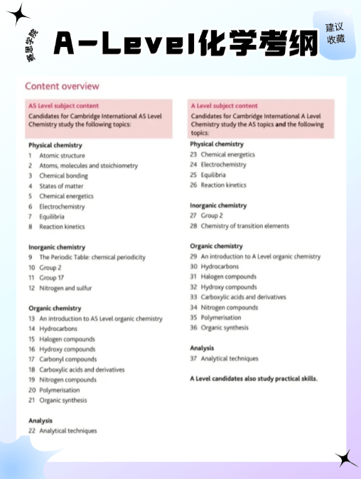 今天,我们就主要聚焦在A-Level化学最基础和核心的前两个大单元主题 【物理化学】 和 【无机化学】 ,看看它们都学什么、考什么、重点难点在哪里、以及哪些是必须掌握的高频考点。【有机化学】这个“大魔王”我们留到下一期专门来讲哦!
