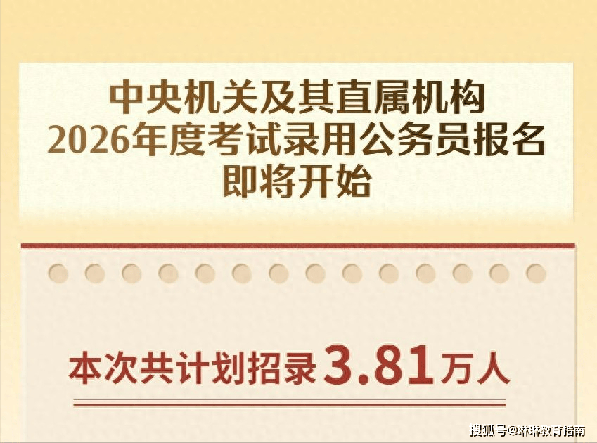 国家公务员局于2025年10月14日发布消息,中央机关及其直属机构2026年度国家公务员考试报名工作将于10月15日8:00正式开始,截止时间为10月24日18:00。