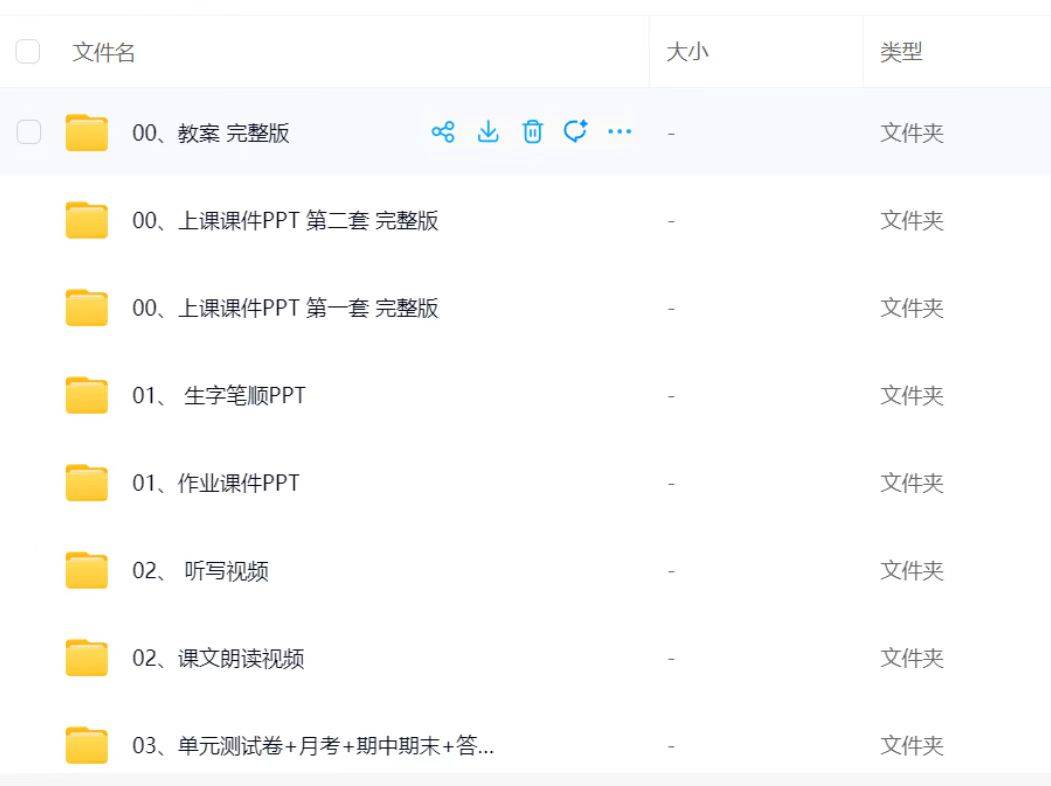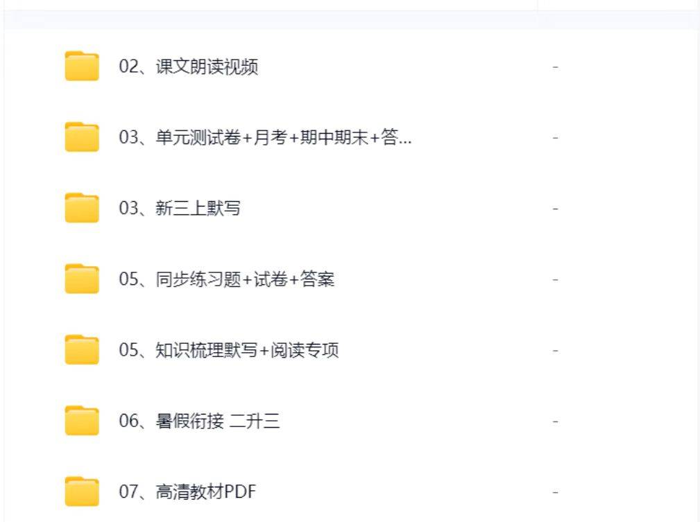 今天为大家分享:这些资料涵盖了丰富的内容,主要包括教案、不同套系的上课课件 PPT、生字笔顺 PPT、作业课件 PPT、听写视频、课文朗读视频、各类测试卷(单元测试卷、月考卷、期中期末卷等)、同步练习题、知识梳理默写与阅读专项资料、暑假衔接资料以及高清教材 PDF 等。