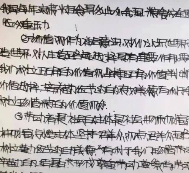 写作能力也是非常重要的,毕竟在高考中,作文在语文中分数占比非常高。可是这位高中生独创的“二维码”字体,看着卷面比较工整,可辨识度实在不高,阅卷全凭扫一扫。