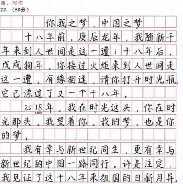 在网络上非常火的《你我之梦,中国之梦》,很多人都好奇是出自何人之手。这篇“神仙卷面”的主人温卓越也是一名学霸。据笔者了解,这篇在高考中也获得了满分的高分。