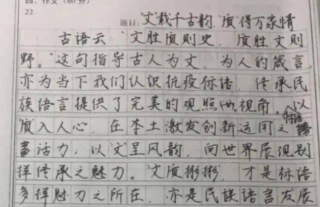无论是文笔还是字体都是无可挑剔,真是“读书破万卷,下笔如有神”。这样的作文想不得高分都难,那些自创“二维码”字体的高中生,你羡慕吗?