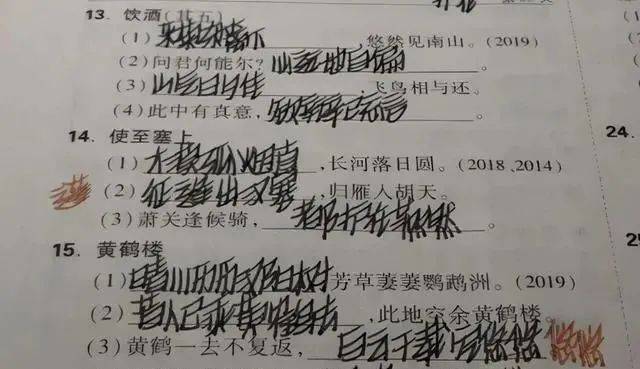 乍一眼看去,整体卷面非常干净整洁,但是仔细看来却没有一笔是直的。一笔一划虽锋芒毕露,却更像是一个“二维码”。老师阅卷全靠猜,而且想拿出手机来扫一扫。