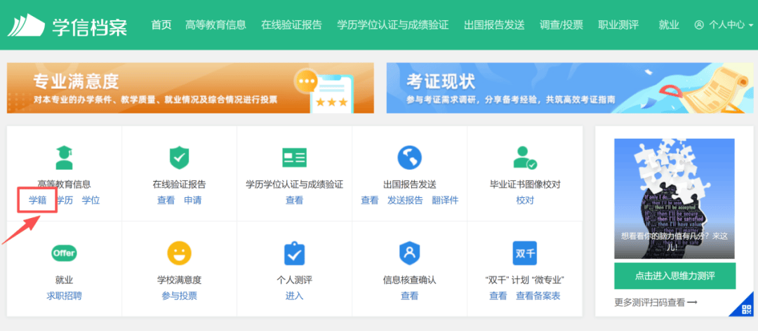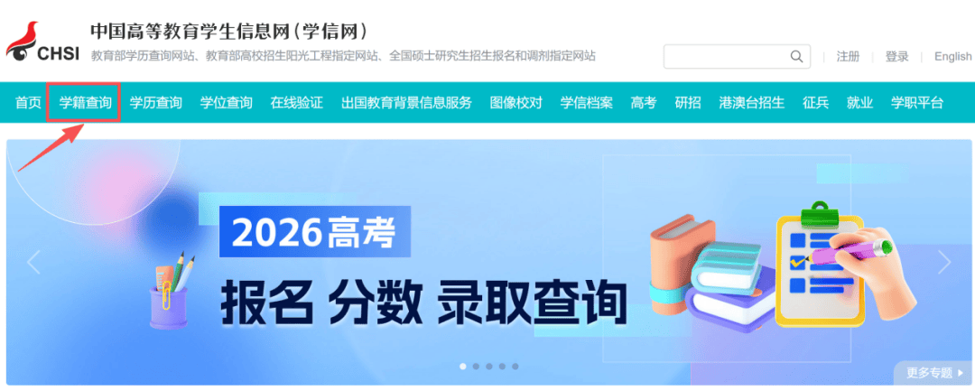 https://www.chsi.com.cn/ 点击进入学籍查询页面。