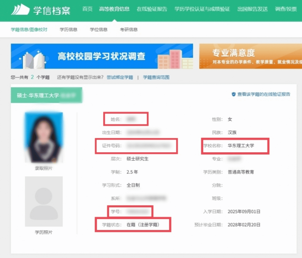 请所有2025级研究生新生及时完成学信网学籍自查,如发现信息不一致可向所在学院负责老师反馈。