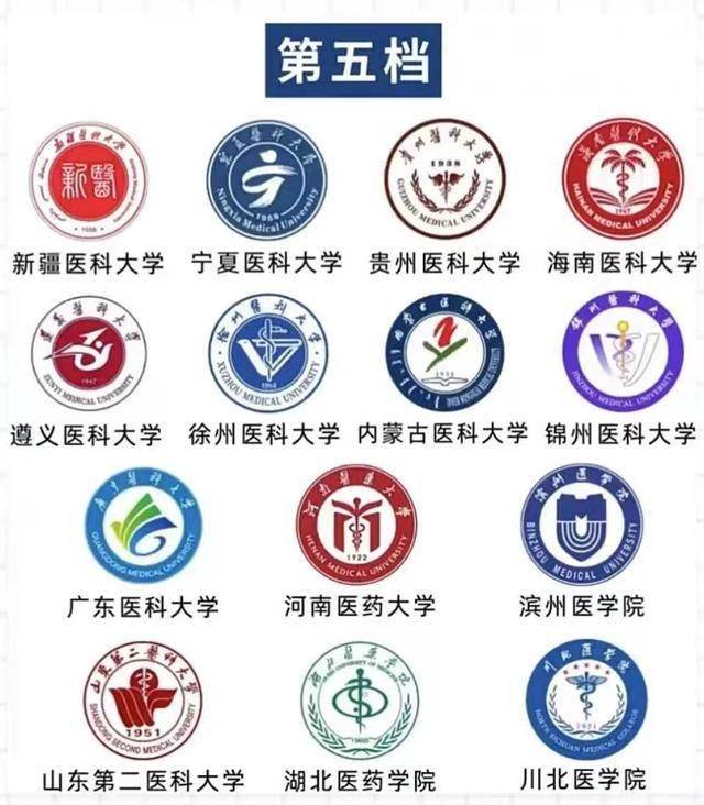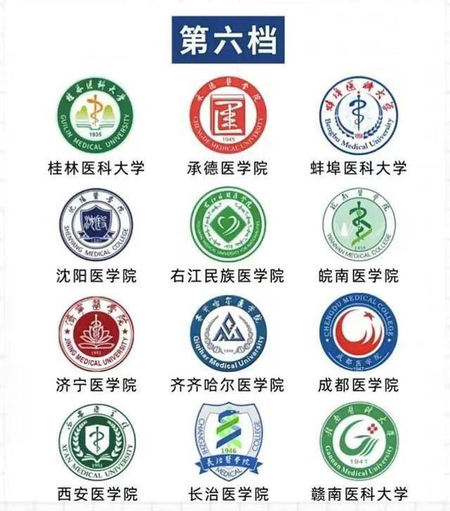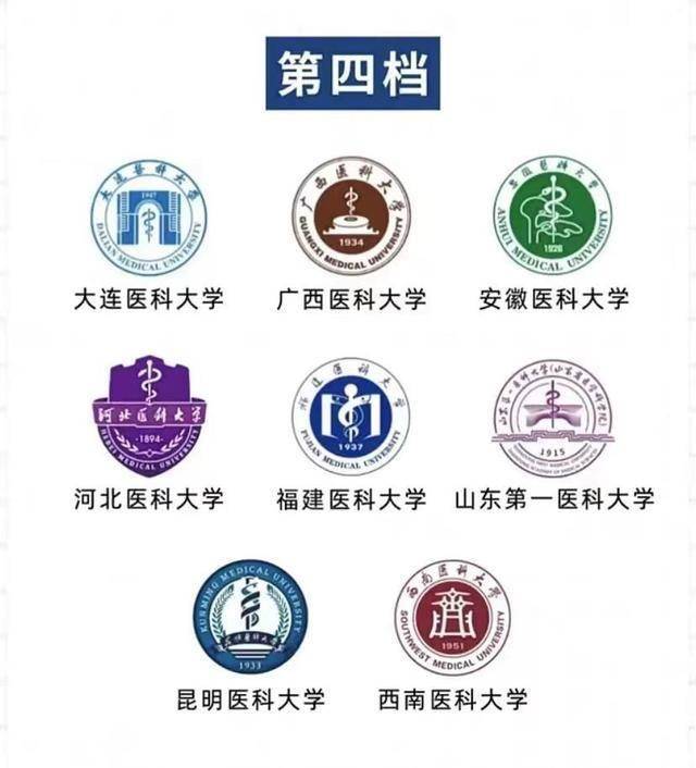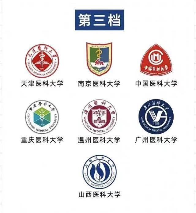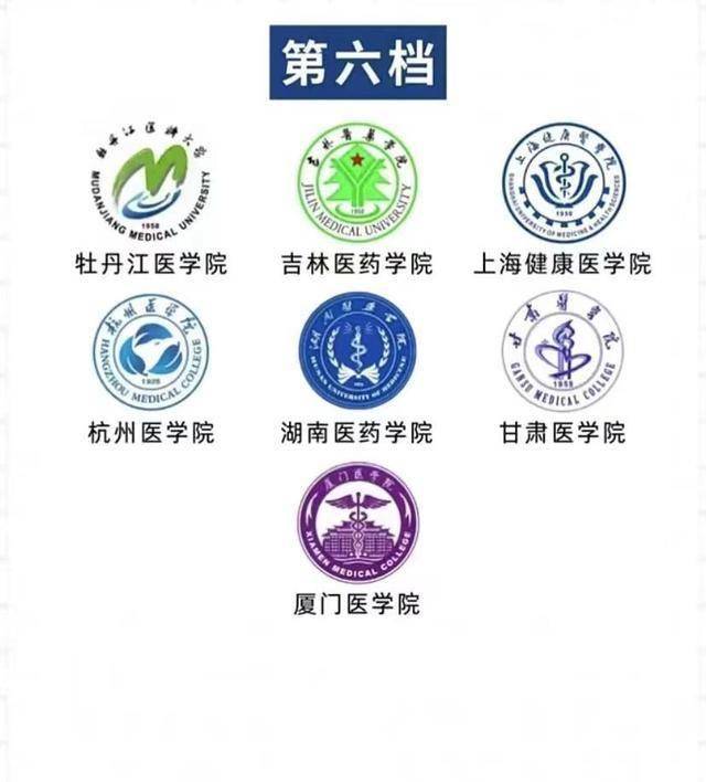 其中,第一档次医学院校4所,第二档次医学院校3所,第三档次医学院校7所,第四档次医学院校8所,第五档次医学院校14所,第六档次医学院校19所。