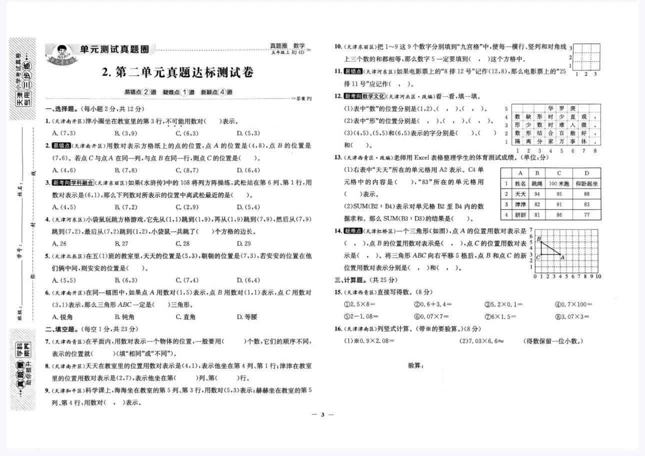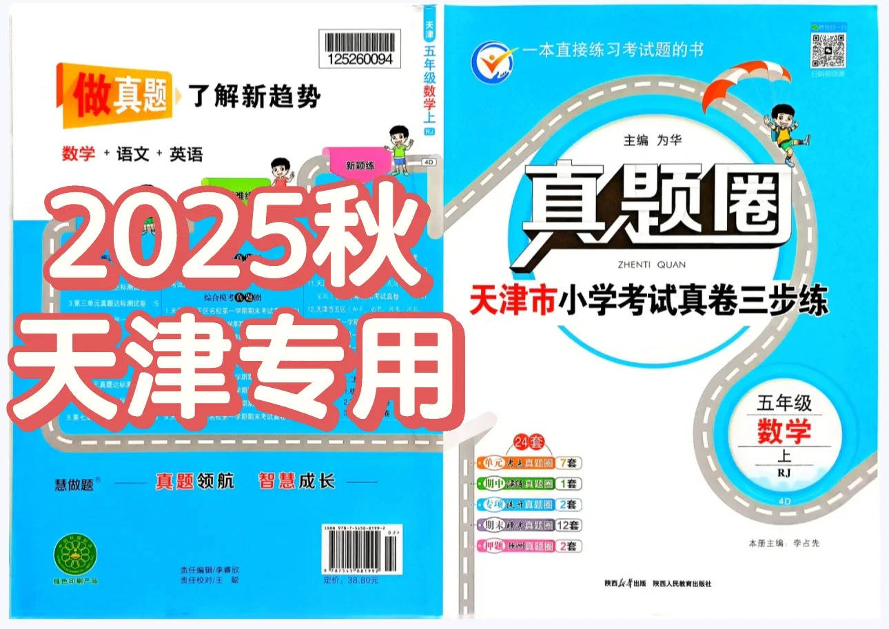 天津五上数学闭眼入!真题圈三步练太香了 家有五年级娃的天津妈妈,别瞎买教辅了!这套2025秋《真题圈》直接对标本地考点,人教版适配度拉满 核心亮点就是“三步练”: 1. 单元卷:吃透小数乘法、简易方程这些基础考点,学完就测超及时 2. 综合卷:专攻多边形面积、植树问题等易错难点,精准踩分 3. 押题卷:汇总天津名校高频考题,考前模拟心里有底 每张卷子都标着易错点、疑难点,答案解析超详细,家长辅导不用费嘴皮子。扫码还能领历年真卷,本地考什么就练什么,比盲目刷题高效10倍! 五年级是数学爬坡关键期,用对真题卷真的能省超多力~ 期末想稳拿高分的赶紧安排!
