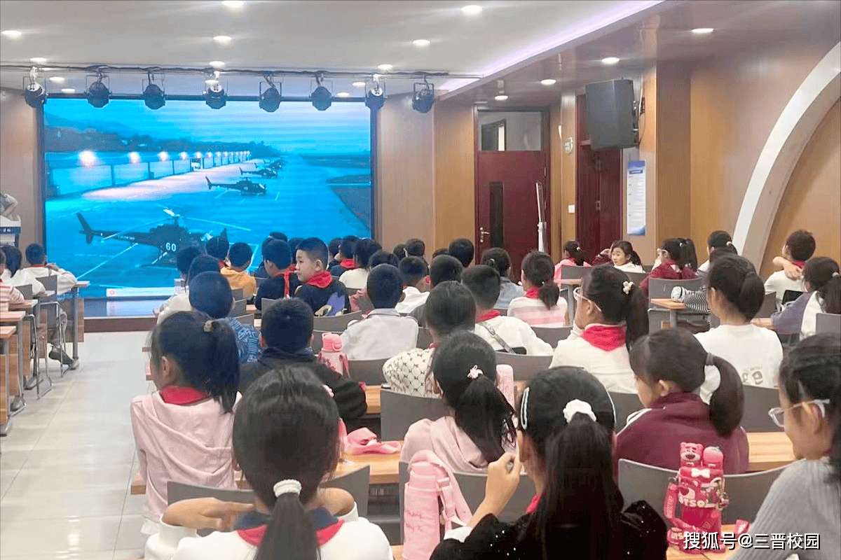 在四楼大会议室,四年二班鲁涵柏爸爸一身正气,为四二班、四四班、四六班孩子们带来一堂热血澎湃的国防教育课《爱我国防,强国有我》。他从祖国的沧桑巨变讲起,引领孩子们回顾那段筚路蓝缕的发展史,懂得“国无防不立”的深刻道理。当屏幕上出现人民解放军飒爽的英姿和先进的武器装备时,孩子们发出一阵阵惊叹,眼神中充满了自豪与崇敬。这堂课,如同一颗红色的种子,在孩子们心中深深扎根,将“天下兴亡,匹夫有责”的责任感与“强国有我”的使命感紧密相连。
