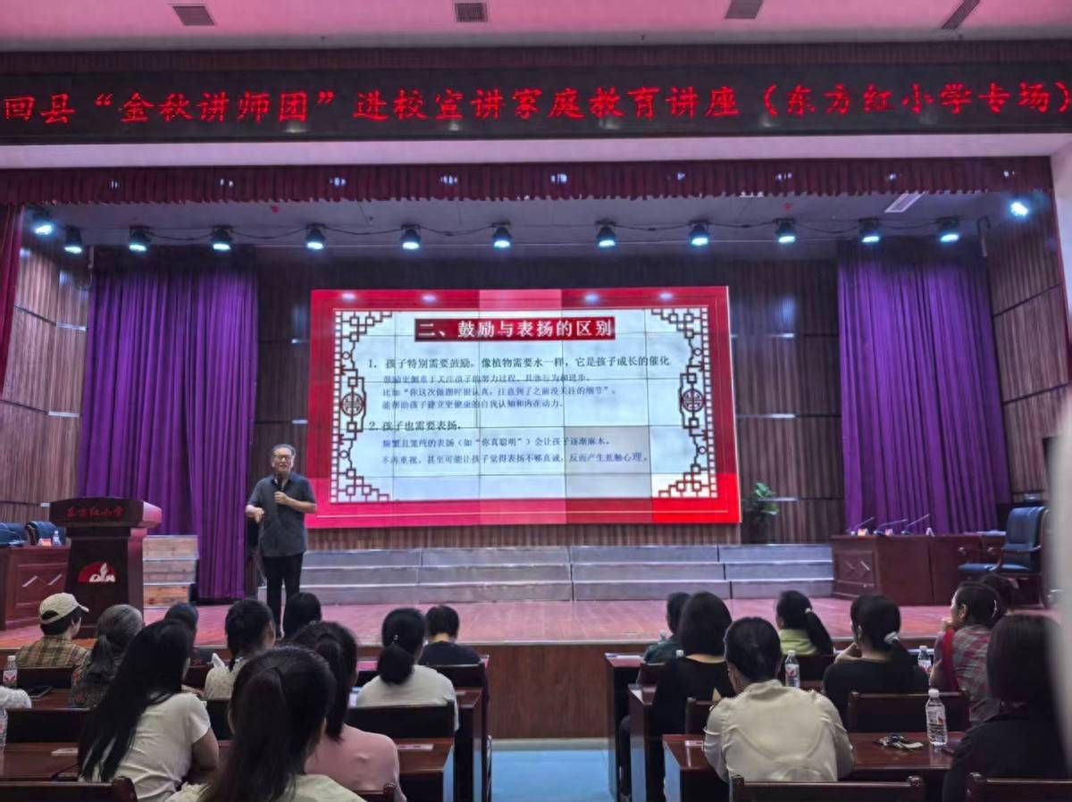 CCTV全频道宣传湖南讯:(通讯员 黄业柳 刘雅婷 廖文胜)为帮助家长掌握科学育儿方法,搭建家校社共育桥梁。10 月 16 日下午,隆回县东方红小学邀请县关工委 “金秋讲师团” 成员龙会帮老师,在多功能报告厅开展以 “爱・规并举” 为主题的家庭教育专题讲座。一年级130余位家长代表到场参与,共同探寻家庭教育的智慧与方法。