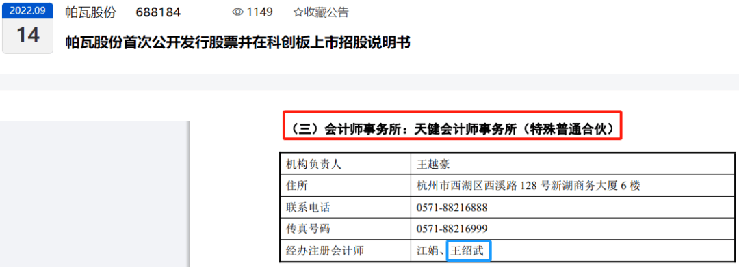 另据该公司招股说明书显示, 该公司IPO会计师事务所为天健,而王绍武便是经办注册会计师之一。