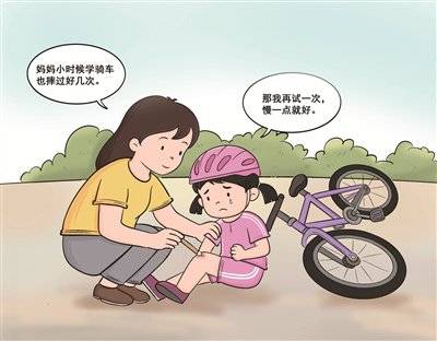 孩子学自行车时摔得膝盖破皮,几回下来情绪崩溃,哭着说“我再也不学了”。以前我会说“这点疼算什么,加油再来”,看似鼓励,却否定了孩子的委屈。现在遇到这种情况,我会蹲下来帮孩子处理伤口,说“摔得这么疼,肯定吓坏了吧?妈妈小时候学骑车也摔过好几次,比你这还严重呢。”先用共情接住孩子的情绪,再分享自己的经历,孩子意识到“挫折很正常,我不是一个人遇到这种情况”,反而会主动说“那我再试一次,慢一点就好”。