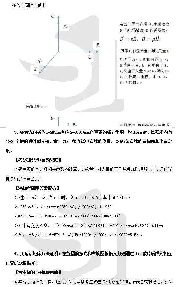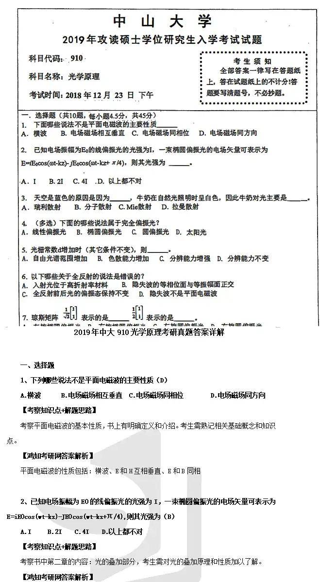 2018-2019年中大882光学原理(原910)考研真题答案详解