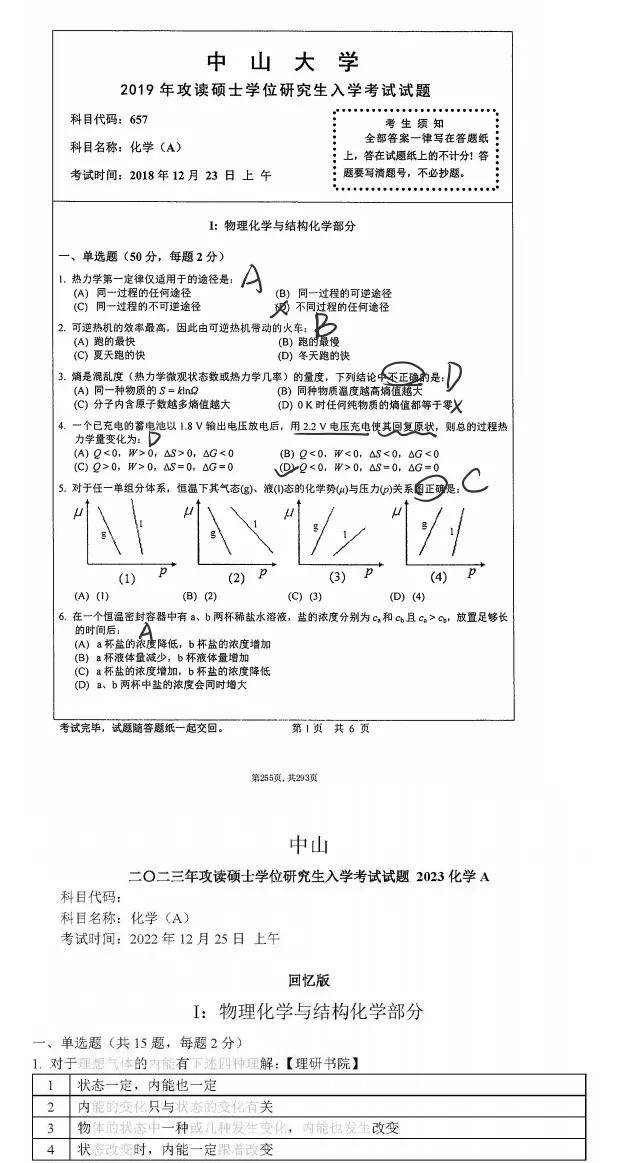 2007-2024年中大636化学A考研真题试卷【20-24回忆版】