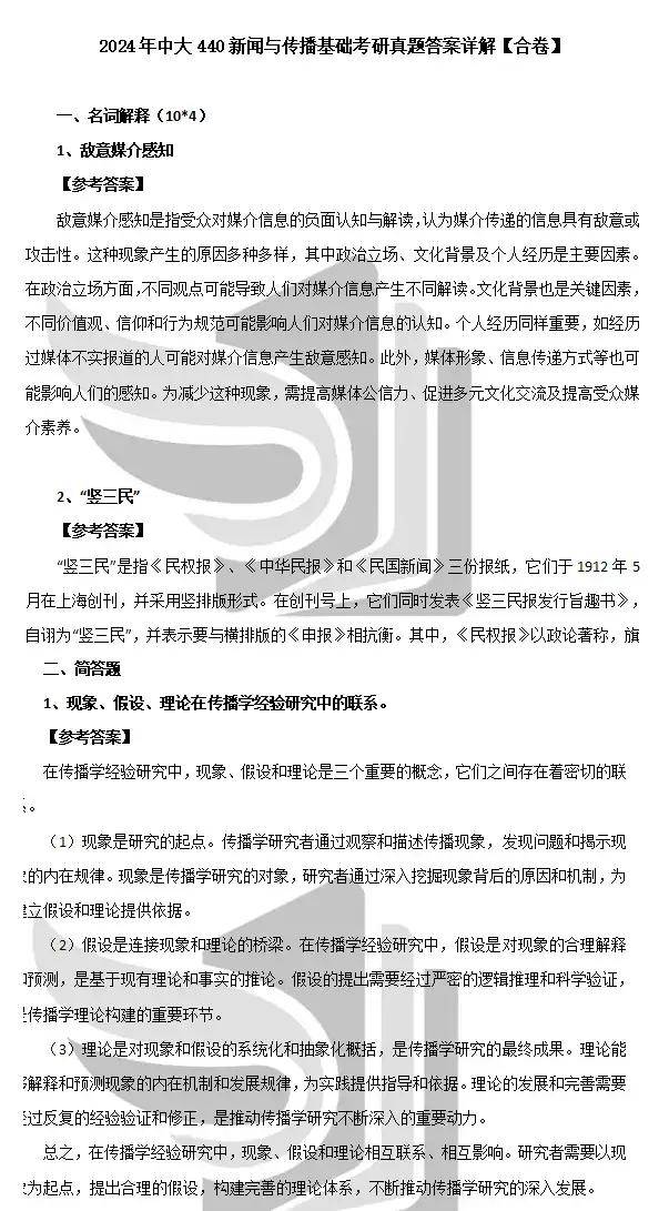 2021-2024年中大440新闻与传播专业基础考研真题答案详解(合卷)