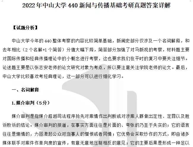 2020年中大440新闻与传播专业基础考研真题答案详解(数字媒体)