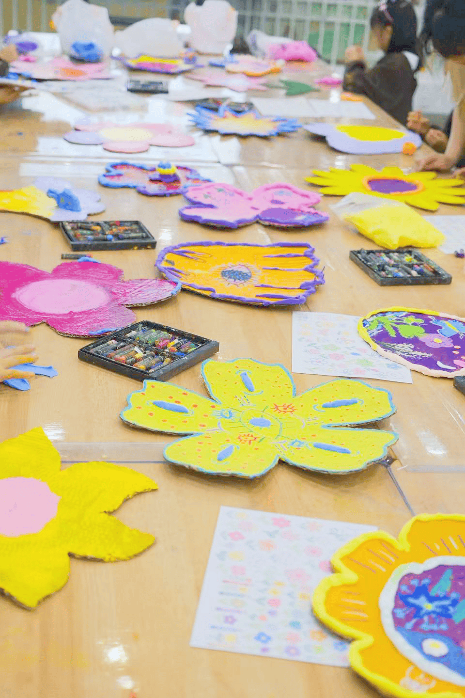 三位艺术家虽风格各异,但都以“花”为载体,展现了艺术创作的多元性:草间弥生的“符号化花卉”、宋三土的“情感化花卉”、卡萝琳·尼杰的“生活化花卉”,让孩子们明白——花朵可以有千万种艺术表达,创作的关键在于融入自己的观察与情感。