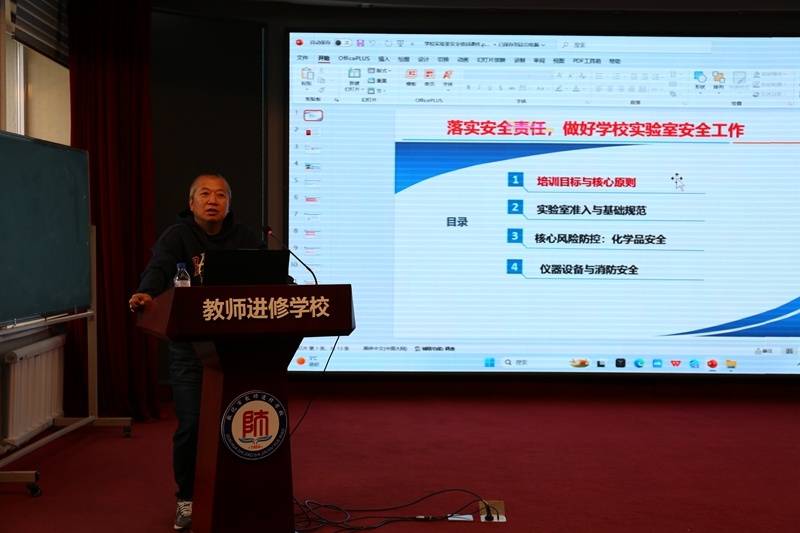 本次培训精心构建“安全为基、技能为要、规范为本”的三维课程体系,精准对接实验室管理实际需求。在安全培训环节,特邀国家注册安全工程师李伟进行专题授课,深度解读危险化学品“双人双锁”管理细则,现场演示消防器材规范操作,并结合真实案例剖析应急处置流程,有效提升参训人员的风险防范能力。在技能提升环节,市教师进修学校物理、化学、生物、科学四学科教研员联袂主讲,围绕实验教学辅助技能、仪器设备维护校准、实验课程资源开发等内容展开培训,全面提升管理员的专业支撑能力。在规范管理环节,专家团队详细解读实验室建设标准,细化全流程档案管理要求,强调仪器设备“分类科学、标识清晰、取用便捷”的摆放原则,推动实验室管理向标准化、精细化迈进。