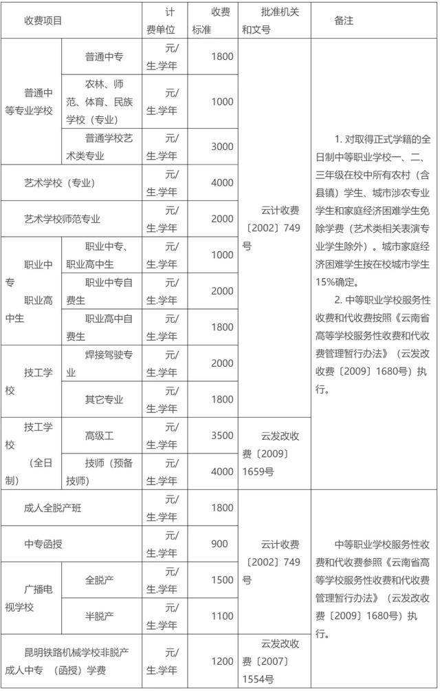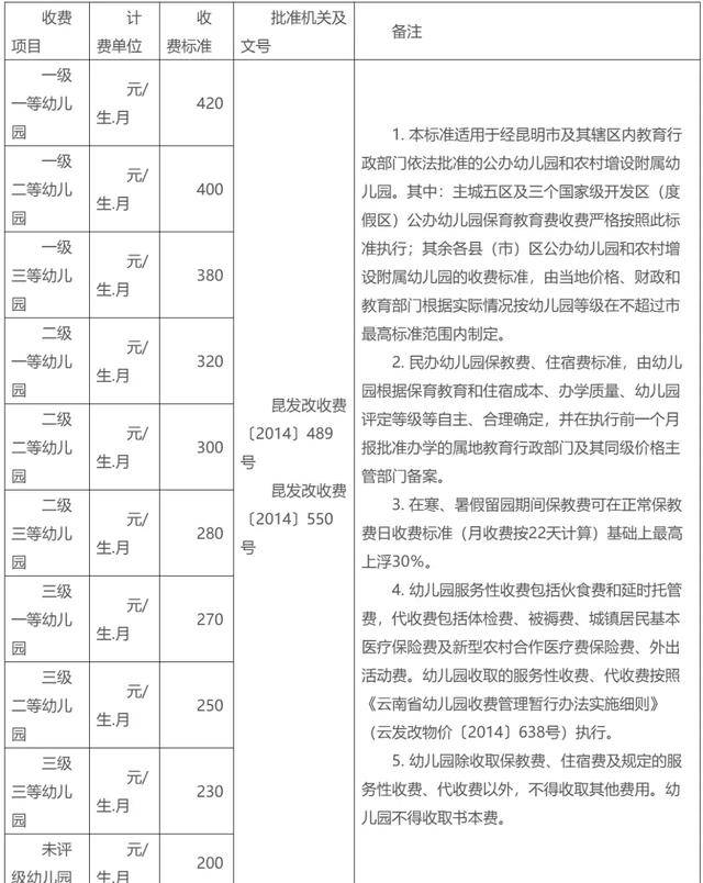二、 以上收费项目和收费标准适用于昆明地区经教育行政部门依法批准的公办普通中小学、普通高中、中等职业学校、幼儿园和农村增设附属幼儿园。