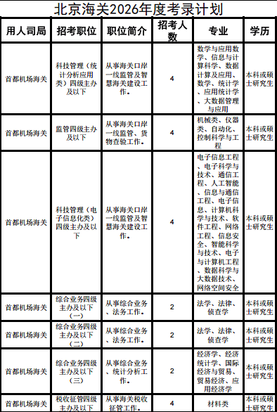 北京海关的业务管辖范围为北京市的各项海关管理工作。负责本关区征税、监管、缉私、出入境检验检疫、统计等各项工作。