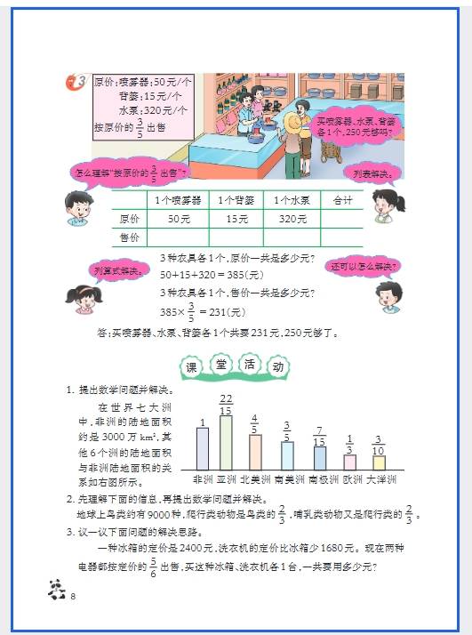 - 购物时,让孩子算 “打 8 折后应付多少钱”“满 200 减 50,买 3 件单价 80 元的商品实付多少”,对应课本里的 “百分数折扣” 知识点。