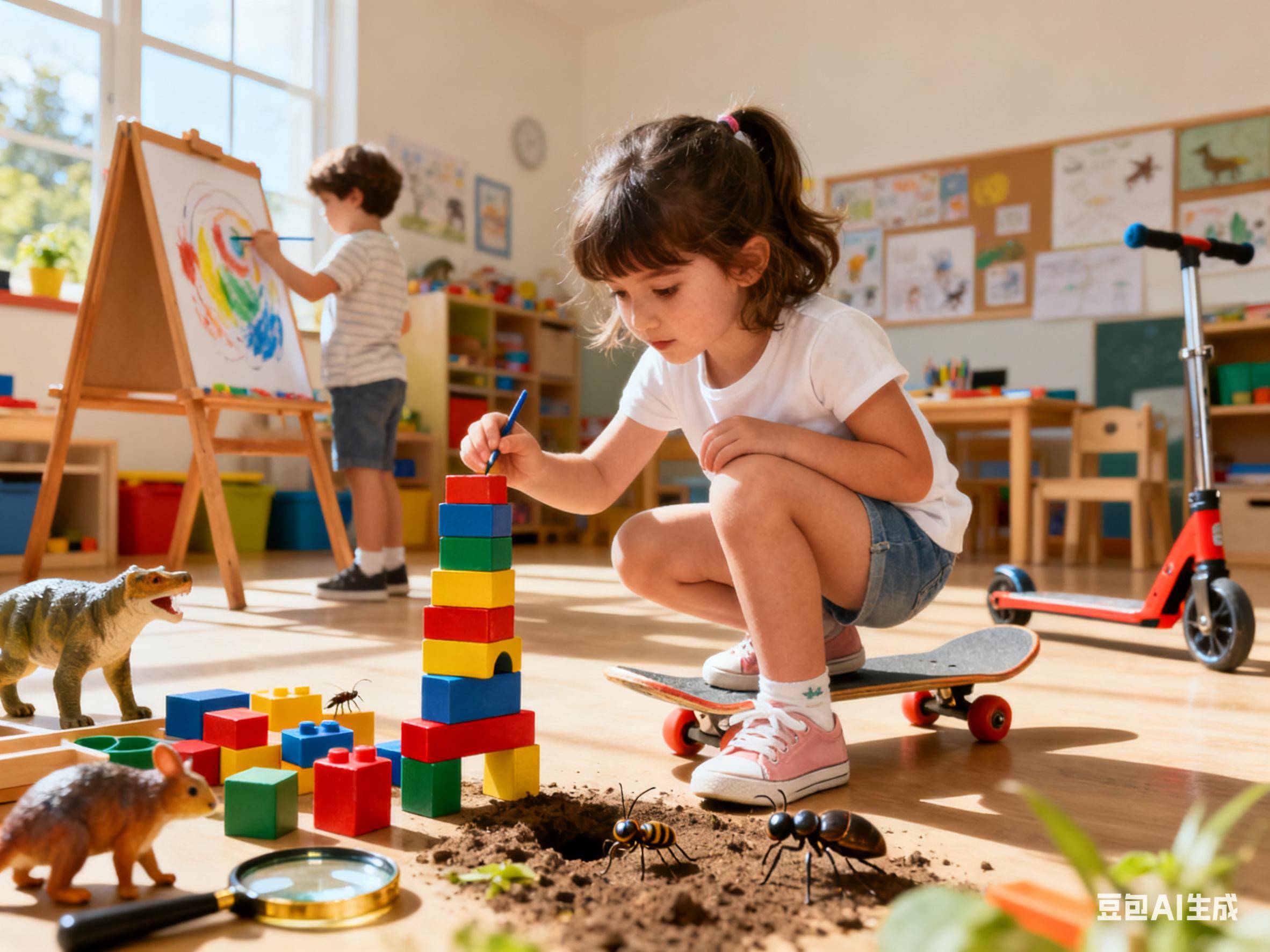 可以给孩子提供一些合适的材料,比如积木、拼图等,让他们在安全的范围内进行探索和创造。