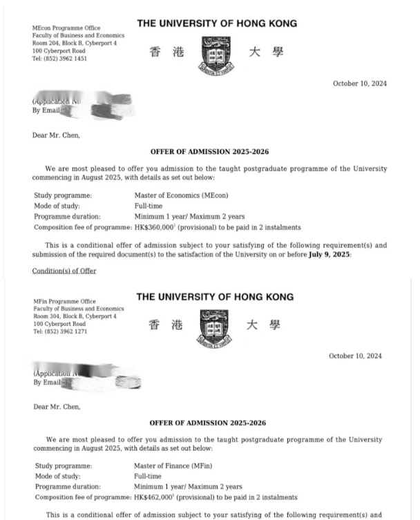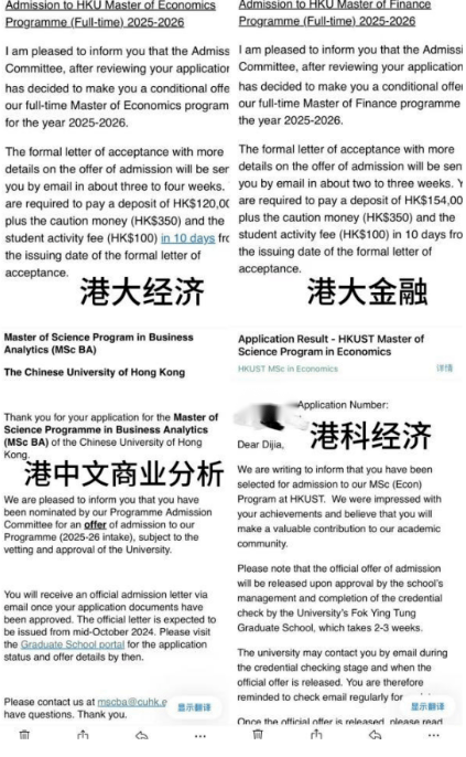 还没消化完这份喜悦,第二天我又收到了港大金融学提前批的 offer—— 这是我申请 list 里门槛最高、也最想去的项目,幸福来得太过突然。
