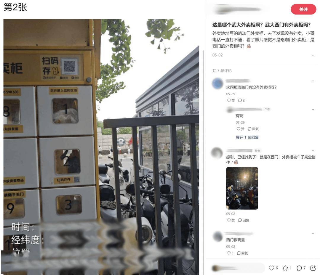 学生们的困扰首先是,我的外卖到底在哪里。学校太大,校门太多,骑手找不到学生描述的地址,学生找不到骑手放外卖的地方,常常只能对着骑手拍来的外卖照片满校园寻宝——“这到底是东门还是西门的外卖柜?”