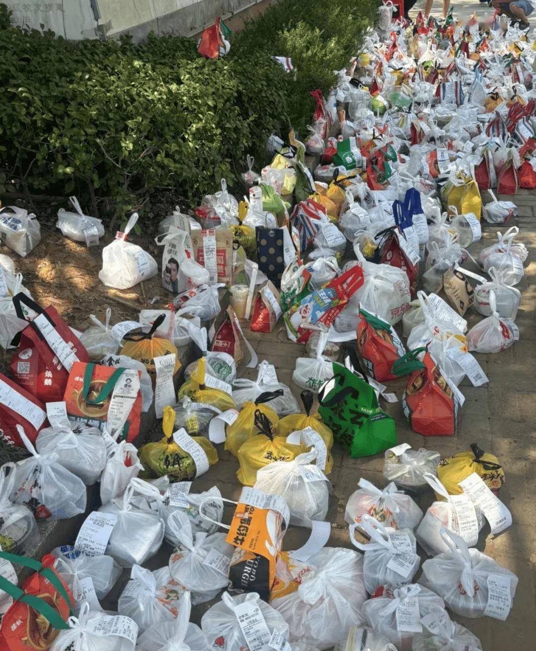 要知道一个大学上万人,大学生点外卖的体量和写字楼里的打工人大概率不是一个数量级。于是一些大学门口常期被外卖淹没,学生们只能去校门口“挖宝式找外卖”,“拿外卖像捡垃圾。”