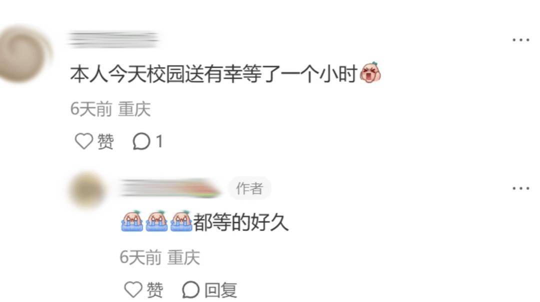 学生们普遍发现,校生活的校园送“奇慢无比”。不知道是骑手运力不足还是平台管理欠缺,有学生说自己“11点点的外卖,下午三点到”。饿急了的学生去校生活后台留言,为什么外卖一个小时还没配送?答复是,您不想等也可以取消。在西南大学读书的小蒋说,校生活平台入驻前,送进学校的外卖偶尔也会超时,但不会这么频繁、迟到这么久。