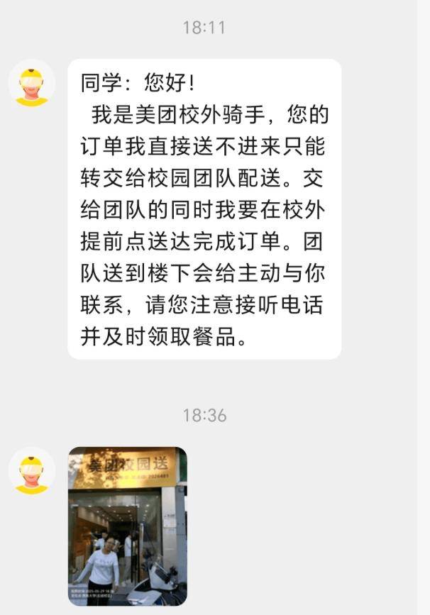 美团有“外卖进校”,饿了么有“校园送”,都是针对大学校园“社会骑手不能进”的规定开发出的另一套配送体系。