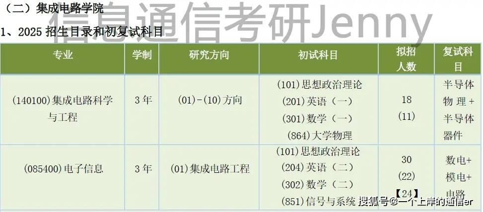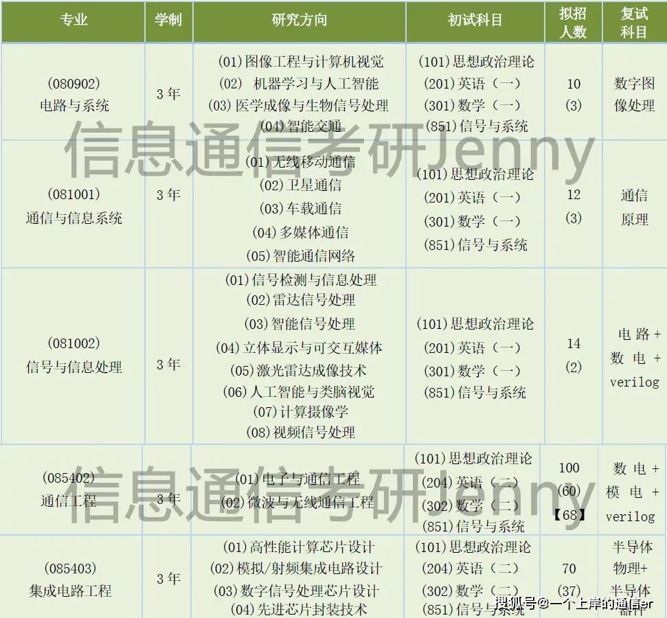 1. 以上仅收录初试考察《851 信号与系统》的专业,其他 070802 无线电物理、080901 物理电子学、080903 微电子学与固体电子学、080904 电磁场与微波技术等 4 个初试考察《864 大学物理》的专业不再收录。