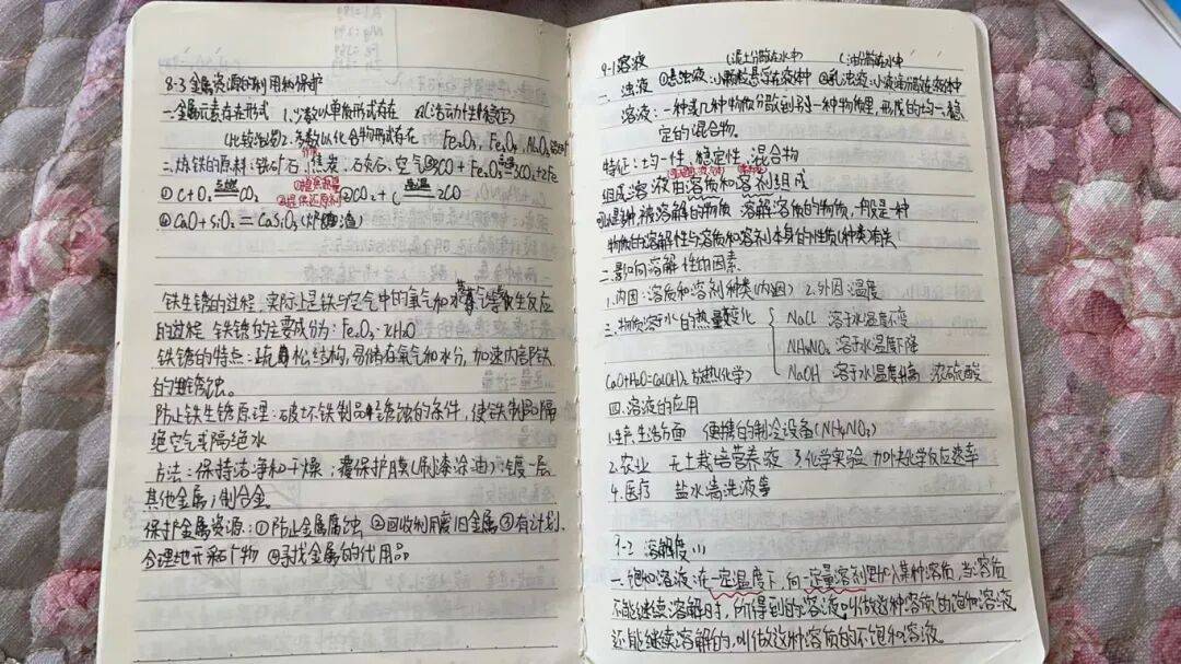 化学靠笔记:化学满分的真谛就是“好记性不如烂笔头”。这一科我记了很多笔记,把易错点、易忽略点都记下来,考前反复看。另外方程式要多多默写,该背的必须背。
