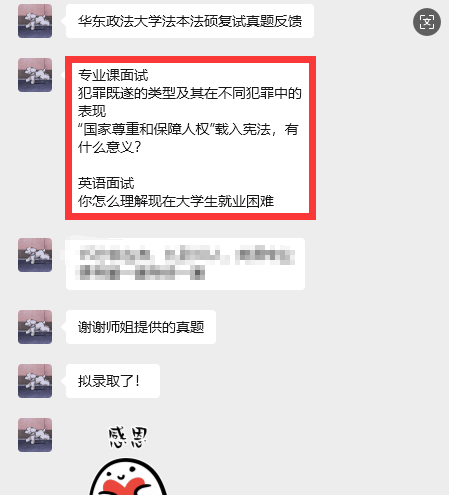 专业课9位面试导师,15分钟左右面试时间,从5科里面抽取2道题,法基1道题,法综1道题,科目:民法、刑法、法理、宪法、法制史。