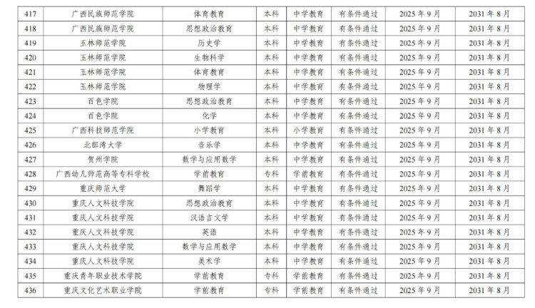 近日,教育部办公厅发布《关于公布2025年通过普通高等学校师范类专业认证专业名单及中期审核专业名单的通知》。重庆5所高校10个专业通过师范类专业认证、7所高校18个专业通过师范类专业认证中期审核。