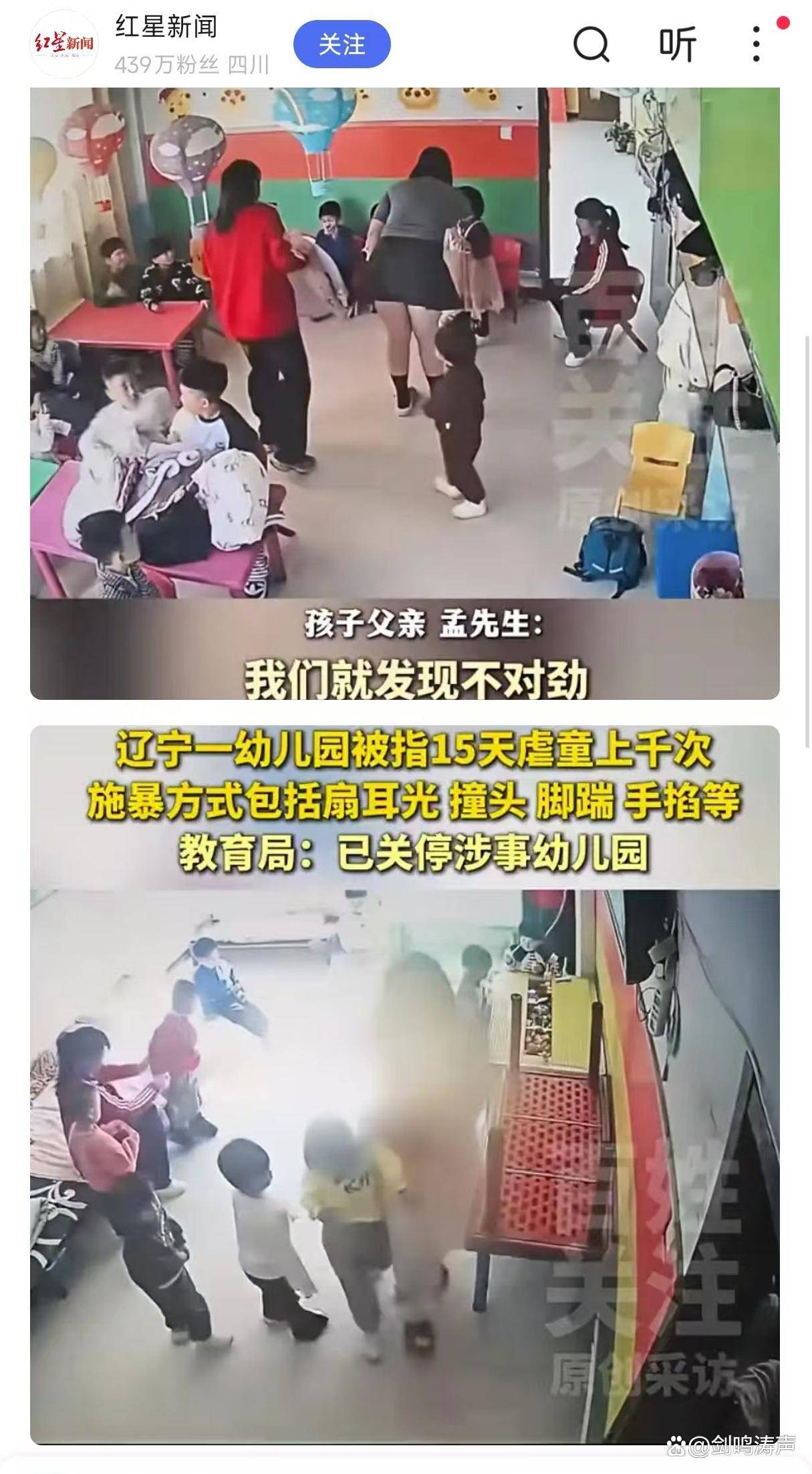 说话不及,前几天,又看到一则东北某地幼儿园里的幼师被家长举报:15天里虐童上千次的新闻,施暴方式包括扇耳光、撞头、脚踹、手掐等。有幼儿因此致精神障碍!